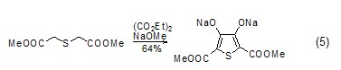 合成噻吩類化合物  在堿的條件下,乙二酸二乙酯與β-硫醚二酯類化合物可合成噻吩衍生物 (式5)[10],采用類似方法也可合成硒代噻吩衍生物[11]
